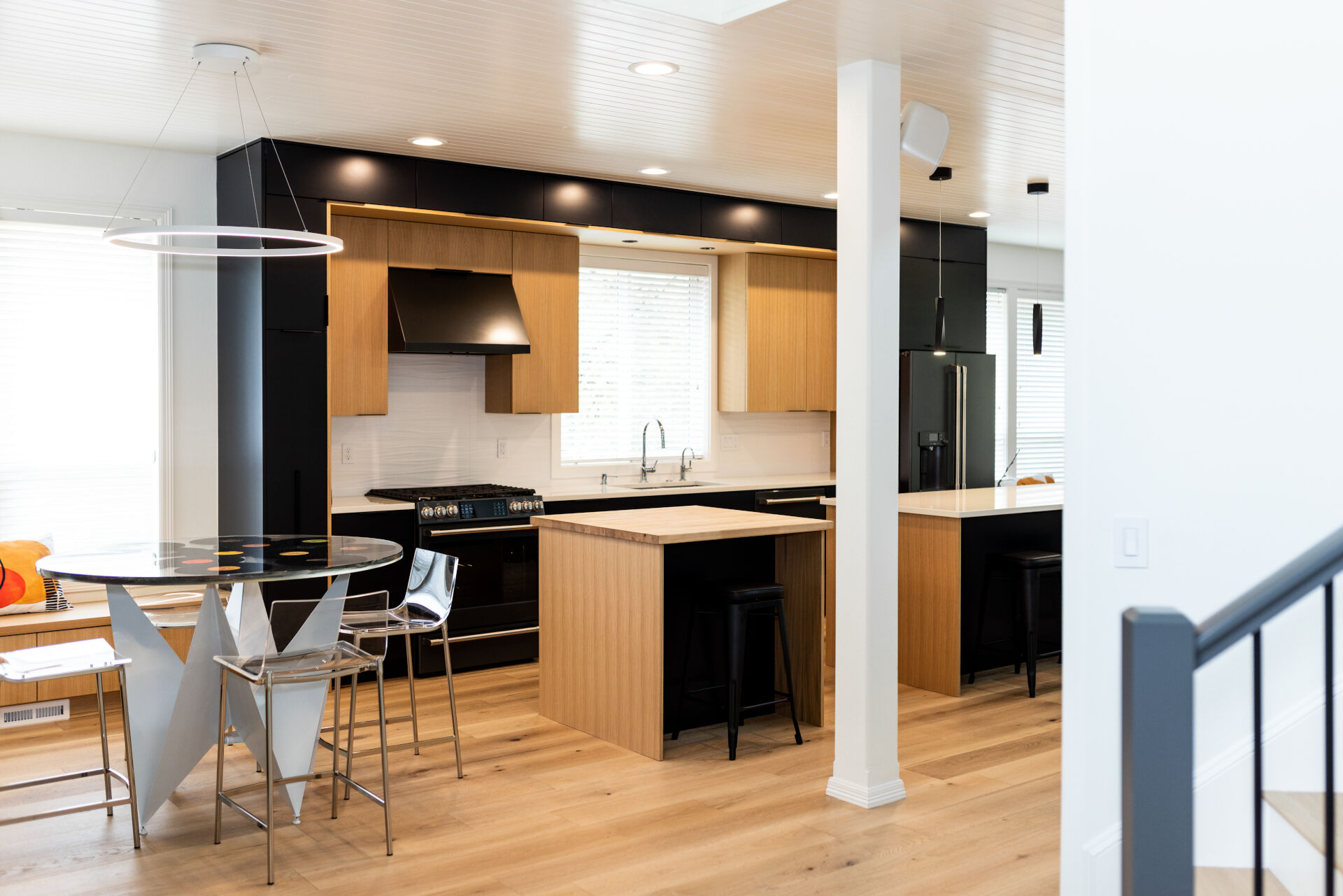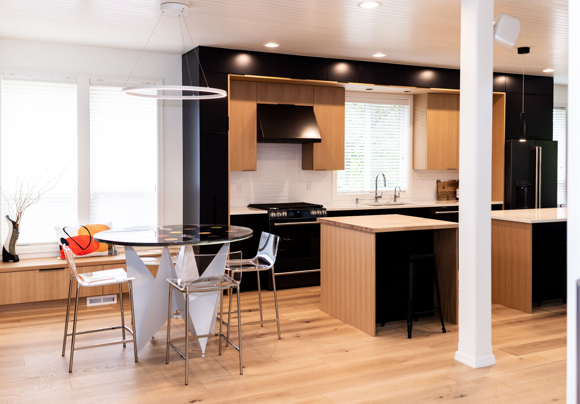 The transformation of this 1990’s traditional kitchen into a contemporary art piece is nothing short of astonishing and genuinely reflects the homeowner’s artsy personality! The new open floor plan respects the character of the overall home while bringing in light and a fresh modern feel that will last a lifetime.