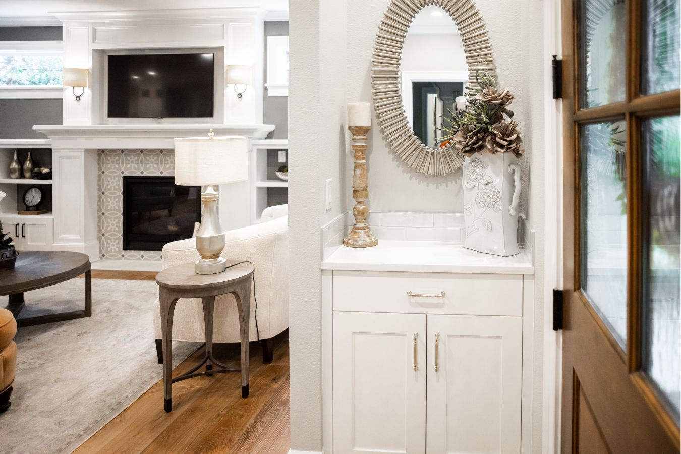 Sophisticated Living Room with Custom Wine/Drink Bar